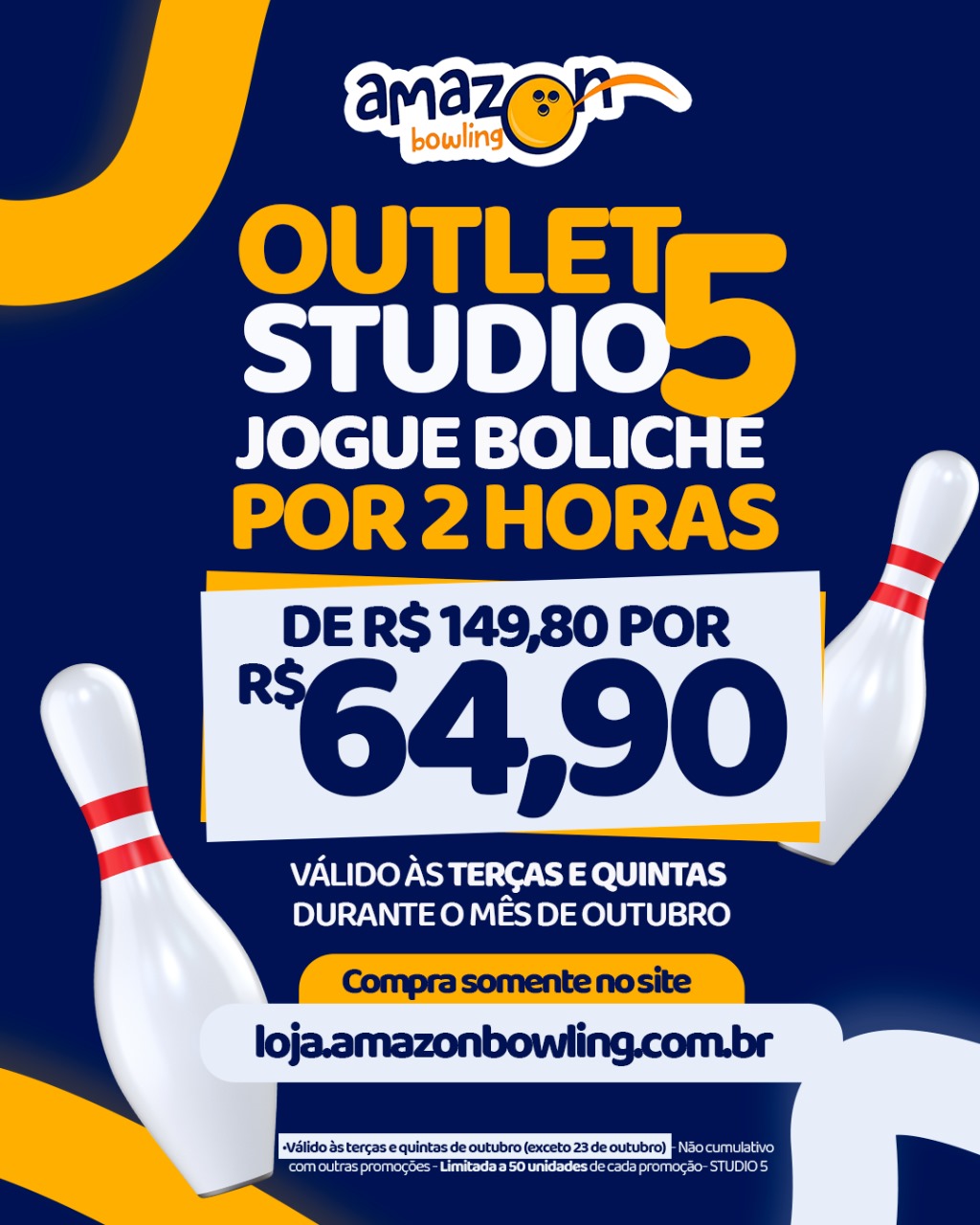 - Promoção referente a hora promocional do boliche na unidade Studio 5, onde cada pista de boliche comporta até 6 pessoas.