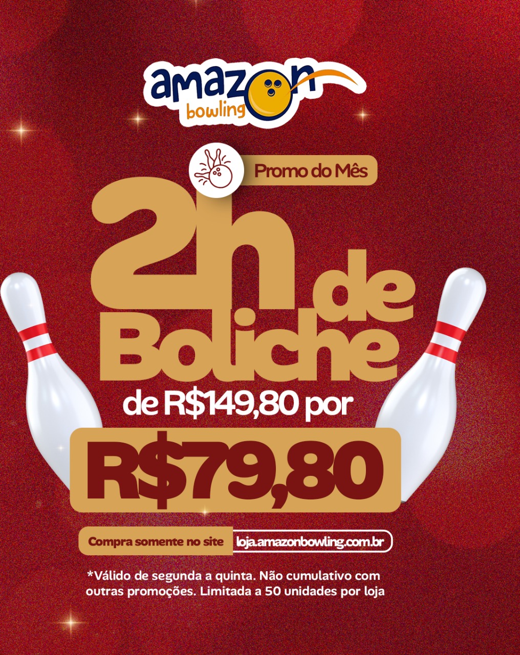 - Promoção referente a hora promocional do boliche na unidade Adrianópolis, onde cada pista de boliche comporta até 6 pessoas.