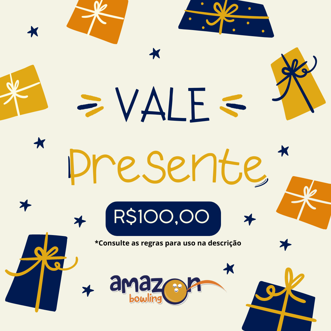 Vale presente para consumo de R$100,00 em itens do Amazon Bowling, ou seja, poderá ser utilizado em qualquer item disponível nas nossas unidades.